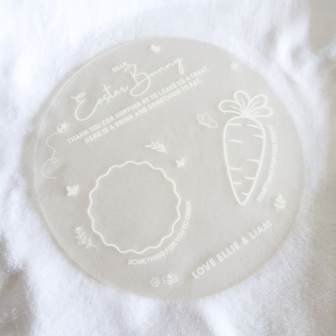 Our Personalised Easter Bunny Treat Tray is designed to make Easter Eve extra special, giving children a place to leave a drink and a treat for the Easter Bunny. Can be Personalised with “Love, [Child’s Name]”, it makes the experience feel even more real and meaningful, as they prepare something just for him.