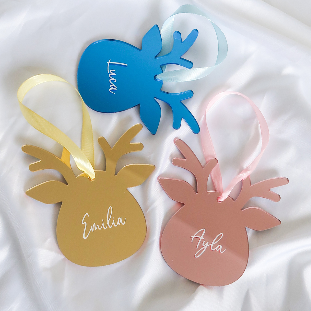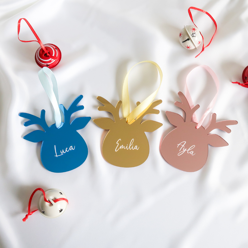 Transform Your Christmas Tree with Our Luxe Reindeer-Shaped Personalised Baubles!
