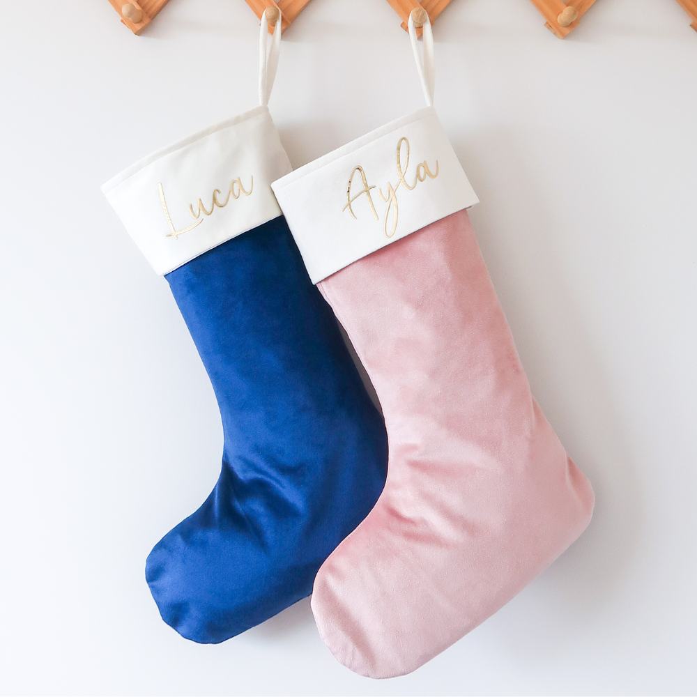 Create magical moments this Christmas with our Personalised Velvet Stockings – a festive must-have for every home. Handcrafted from soft premium velvet with a vibrant blush pink base and cream cuff, they bring warmth, style, and timeless charm to your holiday décor.